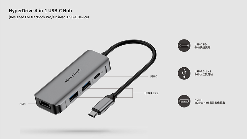 ‧ 適用Mac系列USB-C(含M1晶片)機種,與他牌USB-C裝置