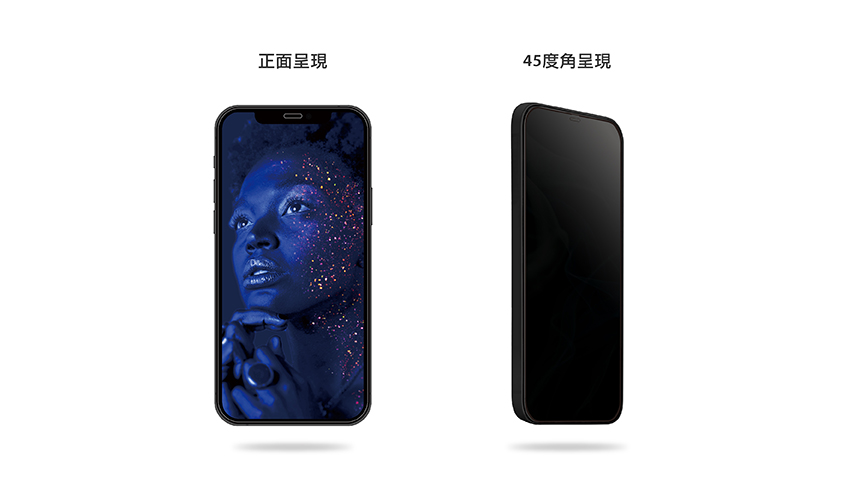 選用日本專業防窺技術,手機45度角時螢幕畫面不可見,手機維持正面觀看時清楚呈現畫面,有效保護個人隱私。